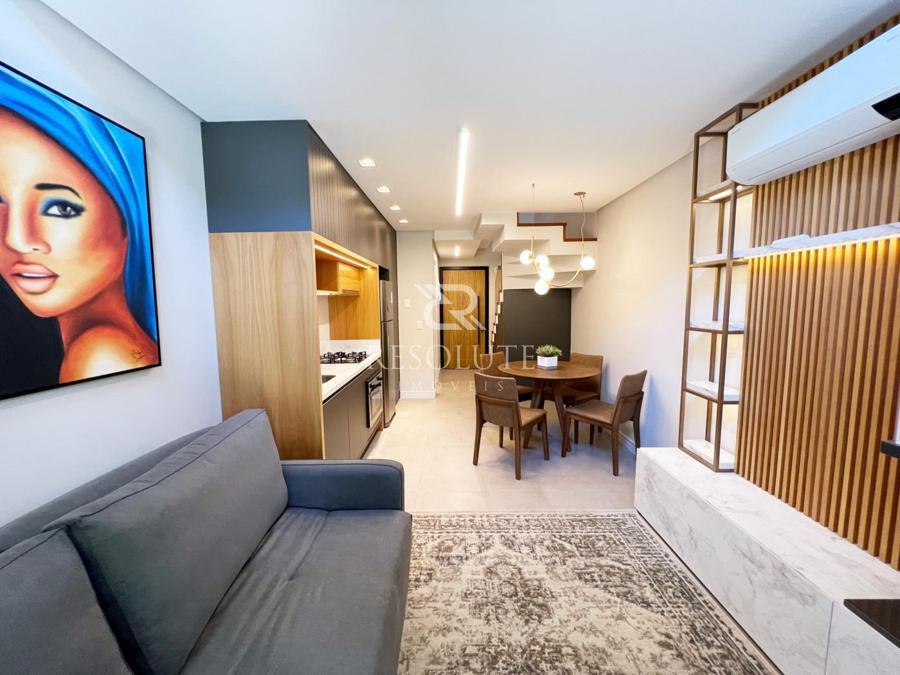 Apartamento loft, mobiliado e decorado, pronto para você morar ou desfrutar no período de férias, final de semana, ou também uma ótima opção para rentabilizar com aluguel de temporada. Ele conta com 01 suíte, lavabo, sala de estar e jantar integradas, cozinha, área de serviço, e com 01 vaga de garagem.