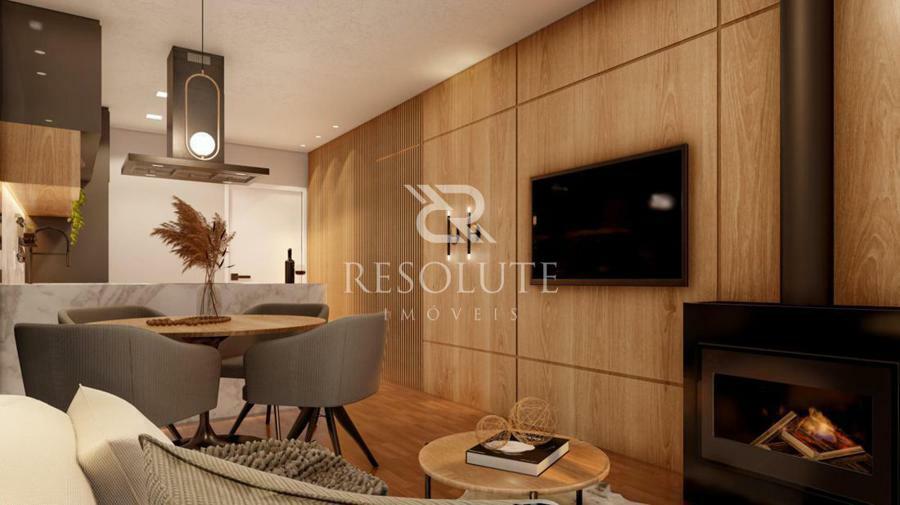 Os acabamentos são de alta qualidade, com piso em porcelanato nas áreas sociais e laminado no dormitório, criando uma atmosfera equilibrada entre elegância e acolhimento. As esquadrias em PVC com vidros amplos favorecem a entrada de luz e contribuem para um excelente isolamento térmico e acústico. O apartamento ainda conta com espera para ar-condicionado split e lareira ecológica, permitindo que cada morador personalize o espaço conforme suas preferências e o clima típico da serra.