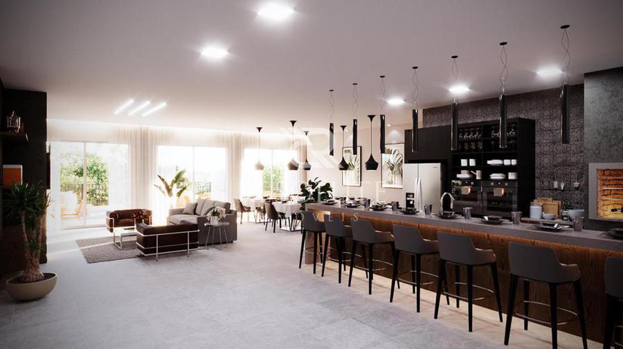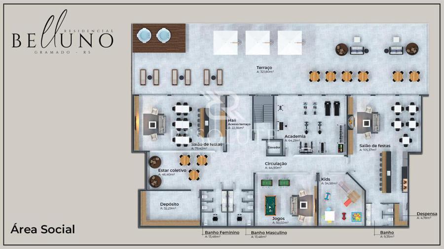 PISO: Dotado de porcelanato classe A, Retificado, PEI 5, com dimensões harmônicas e acabamento acetinado e rejunte epóxi em coloração equilibrada.