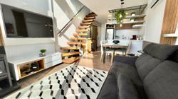 Charmoso apartamento de uma suíte, localizado na região central da cidade, próximo a famosa rua dos fondues, onde também ficam localizadas lojas, cafés e restaurantes.