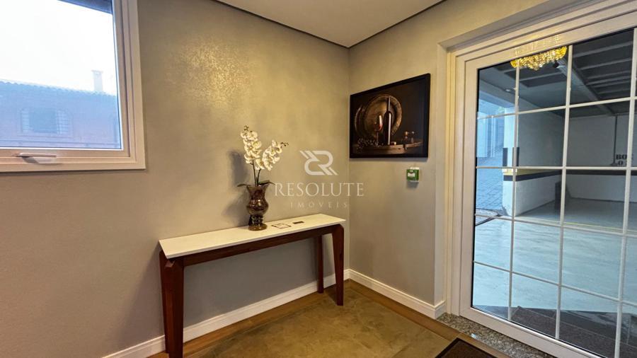O apartamento possui 1 suíte, 1 lavabo, sala de estar, cozinha com área de serviço e 2 vagas de garagem.