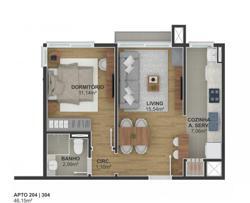 Apartamento com 71m² privativos, distribuído em 02 suítes, lavabo, living estar e jantar, cozinha com churrasqueira, área de serviço e 01 box de garagem.