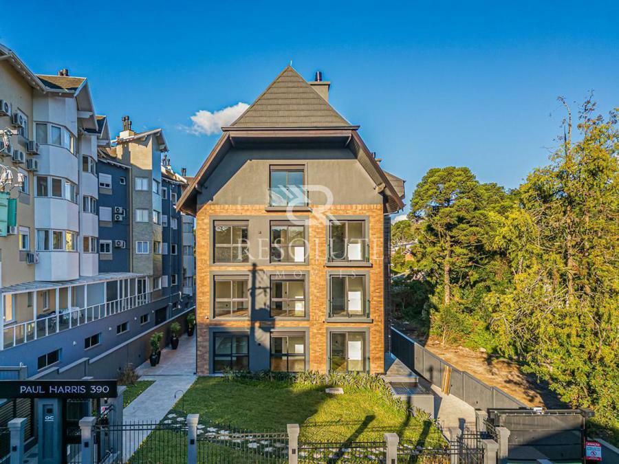 Apartamento de 02 dormitórios sendo uma suíte, no centro de Canela, sala de estar e jantar conjugados, ótima iluminação natural, cozinha com churrasqueira, área de serviço.