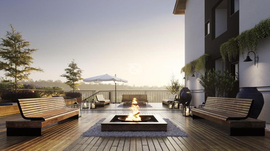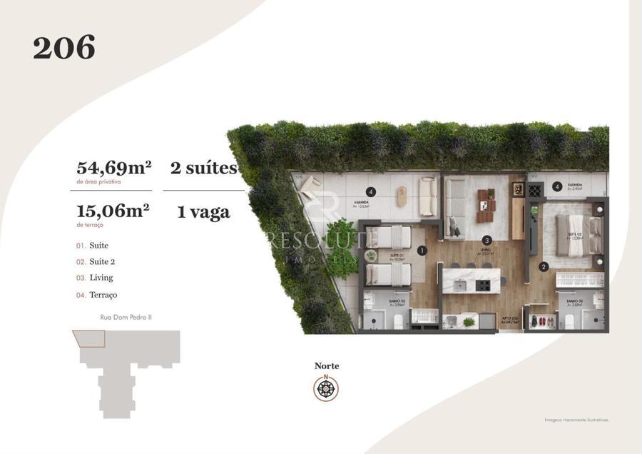 Terraço privativo de 15,06 metros quadrados, frente norte.