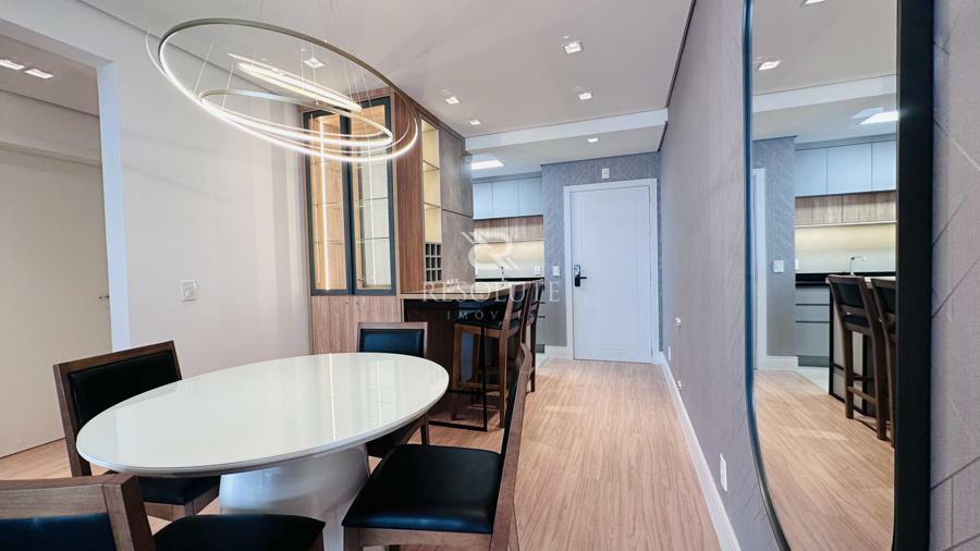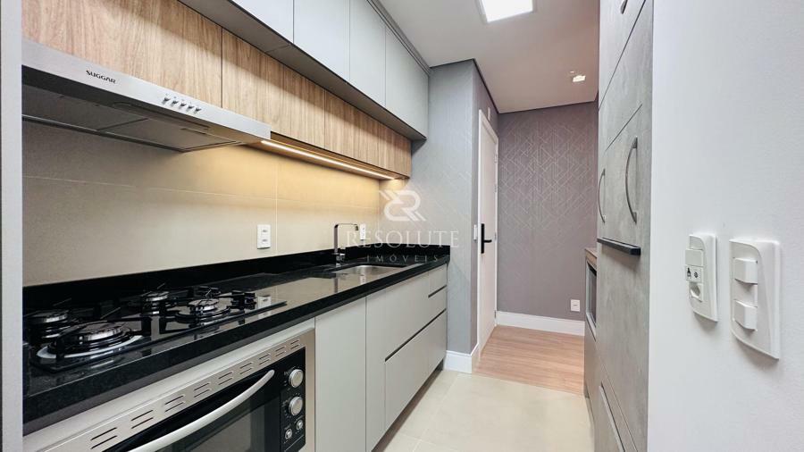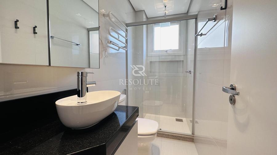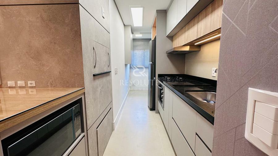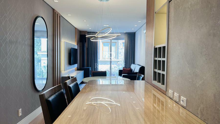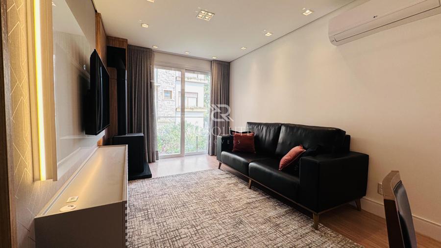 É composto de 2 suítes, lavabo, amplo living, cozinha gourmet com churrasqueira, área de serviço. Possui fechadura eletrônica para o acesso, lareira(calefator), 3 splits, água quente ( aquecedor de passagem ), espera para calefação. Janelas em PVC, vidros duplos, piso laminado e porcelanato, cabeamento para internet e Tv instalados e 1 vaga de garagem.