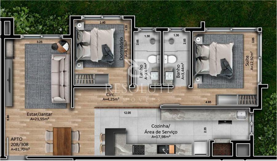 Área Global: 113,04m² | Área Privativa: 81,70m²