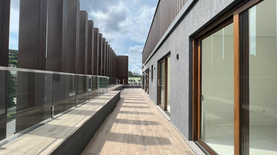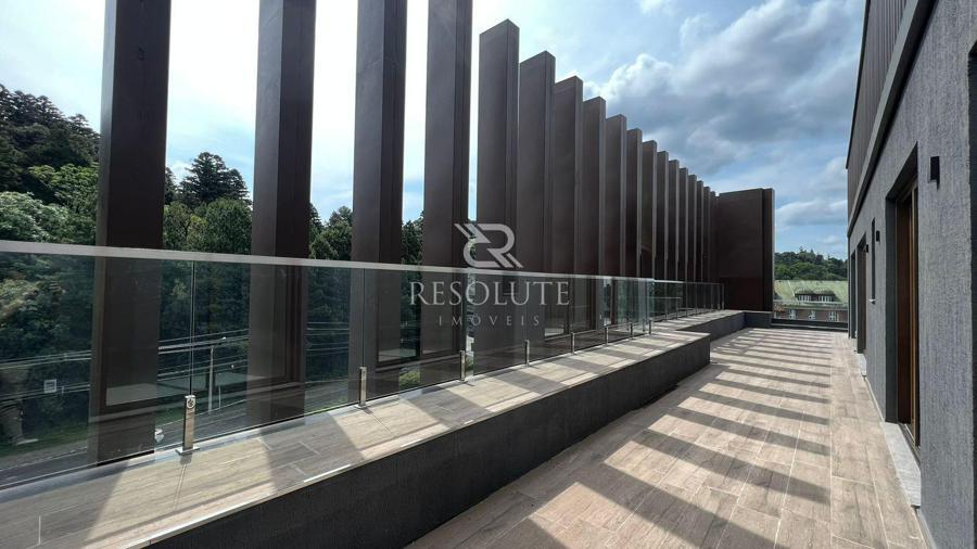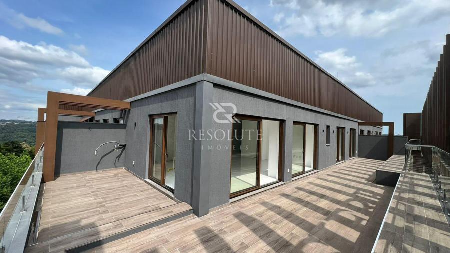 A Penthouse é composta por 02 suítes, lavabo, amplo living estar e jantar, cozinha em conceito aberto com churrasqueira, área de serviço, terraço de 80m² com vista para Av. das Hortênsias e vale, excelente posição solar e 02 vagas de garagem.