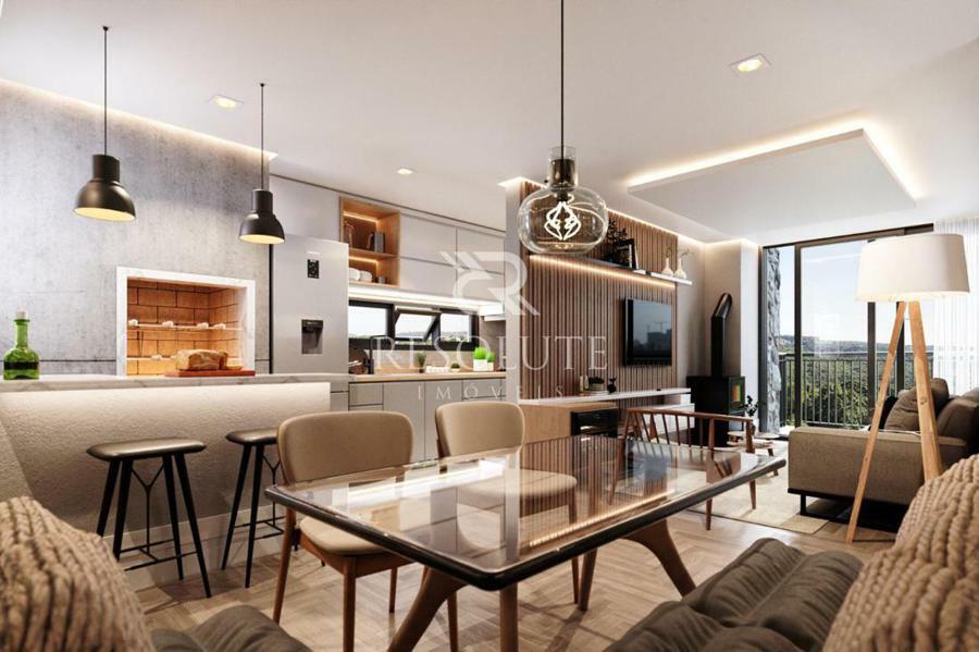 Apartamento de dois dormitórios sendo com duas (02) suítes, lavabo, sala e cozinha conjugados, churrasqueira a carvão.