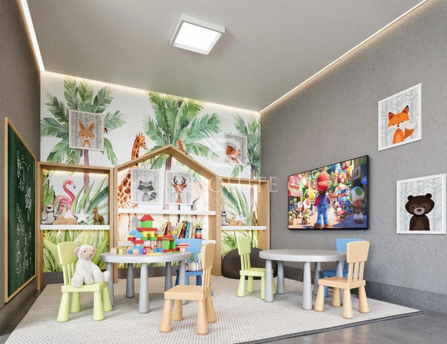 Rooftop com espaço gourmet, terraço e espaço kids