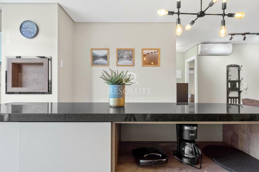 Apartamento com 02 suítes, amplo living estar/jantar, cozinha americana com churrasqueira, lavabo, área de serviço separada, e dispõe de 01 vaga de garagem.