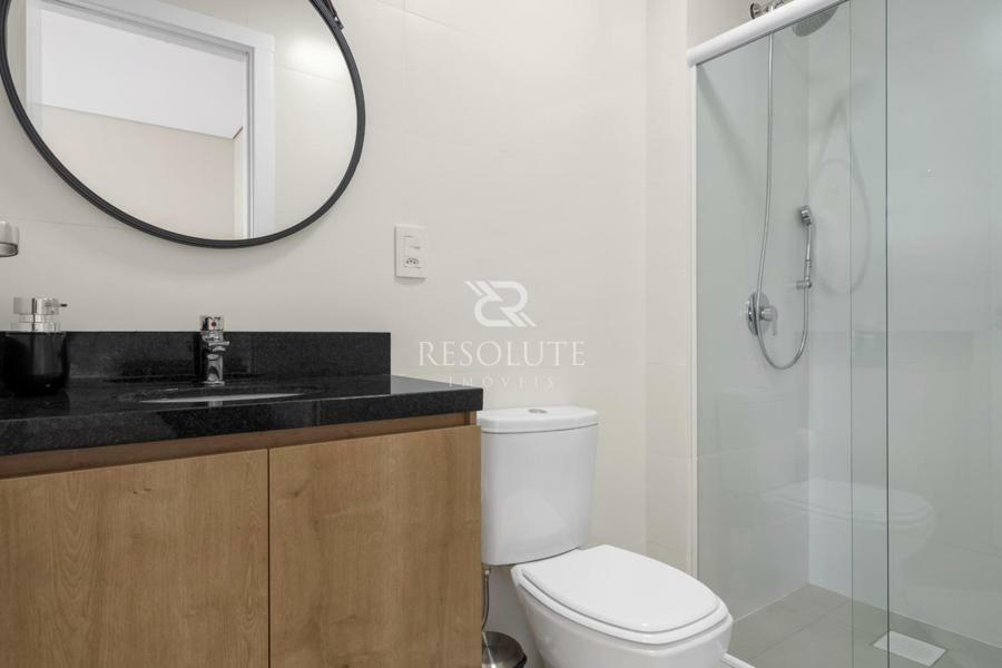 Acabamentos com piso laminado e porcelanato, possibilidade de instalação de piso aquecido, espera para split, aberturas em PVC com vidro duplo.