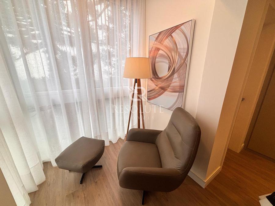 A sacada fechada, um convite ao relaxamento, oferece uma vista deslumbrante da cidade, perfeita para apreciar um bom vinho nos dias mais frios ou simplesmente admirar a paisagem.