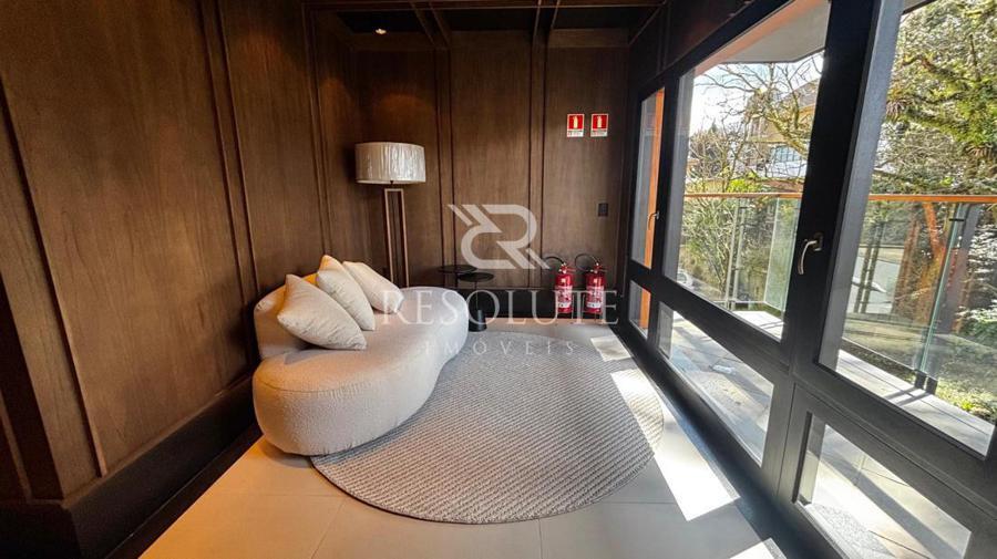 O apartamento é composto por 02 dormitórios, sendo 2 suíte, amplo living com sala de estar e jantar que se estende para a sacada com exuberante vista panoramica. O apartamento conta com espera para split, calefação, lareira, e agua quente, já entregue com persianas automatizadas nas janelas das suites.