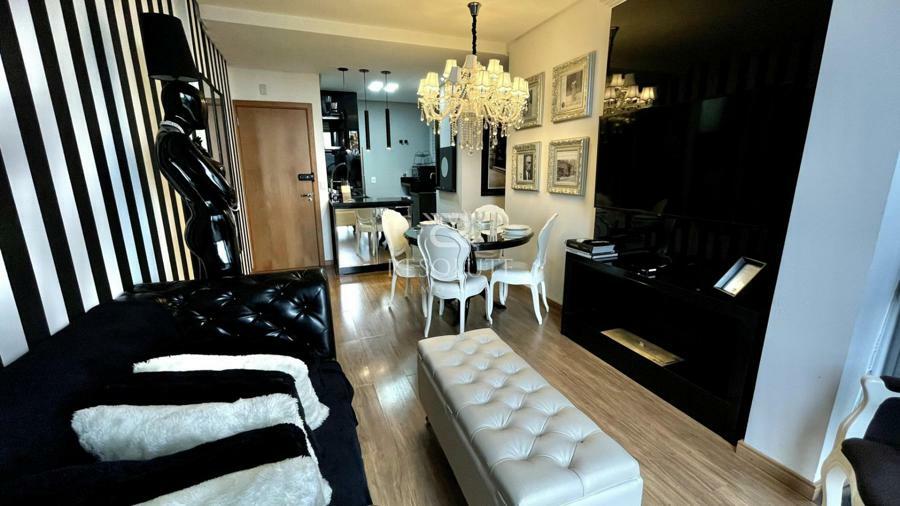 Belíssimo apartamento de 2 dormitórios, sendo 1 suíte, 1 banheiro social, cozinha com bancada, churrasqueira e área de serviço, living com sala de jantar para 4 pessoas, ar condicionado instalado, calefação, mobiliado, decorado e equipado, conta também com 1 vaga de garagem coberta.