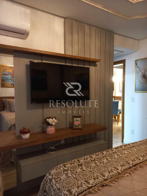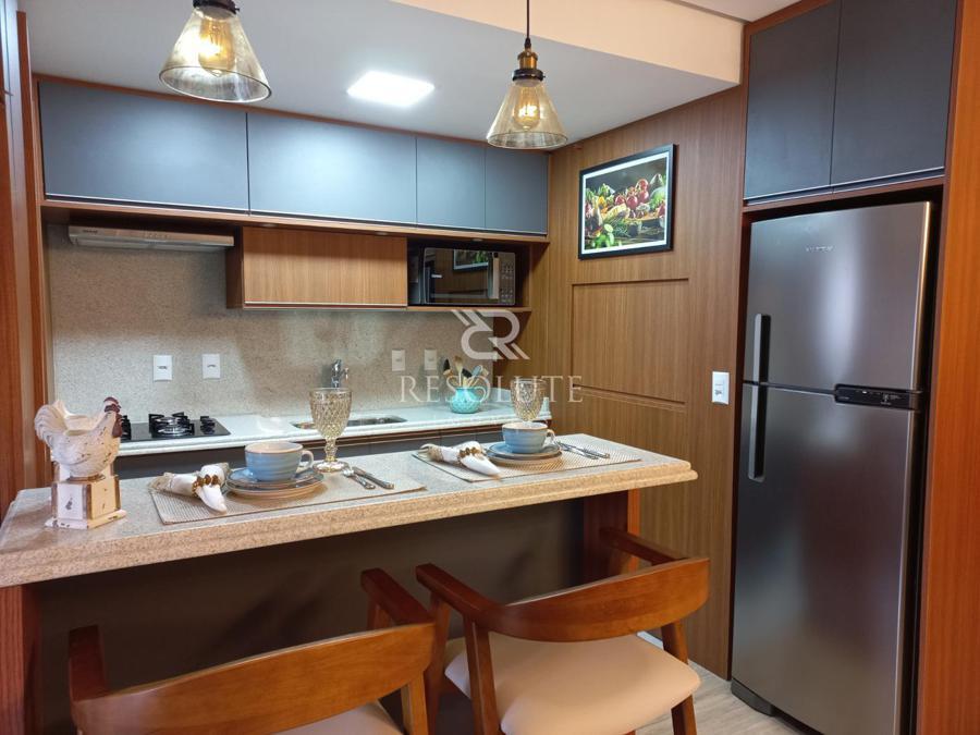 Lindo apartamento, novo, nunca habitado, totalmente mobiliado, decorado e equipado, distribuído em 02 suítes, sendo 01 suíte americana, amplo living estar/jantar, cozinha americana com churrasqueira, 01 vaga de garagem, split, acabamentos em gesso e esquadrias em PVC com vidro simples.