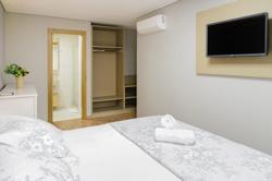 Espaço Funcional: 2 dormitórios (sendo 1 suíte), ambos com ar condicionado (quente/frio) e Smart TV.