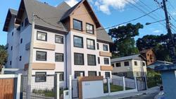 Apartamento no Essencie, em Gramado, com dois dormitórios, sendo uma suíte. Conta ainda com um banheiro social, sala de estar e cozinha integradas, além de área de serviço.
