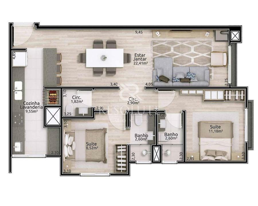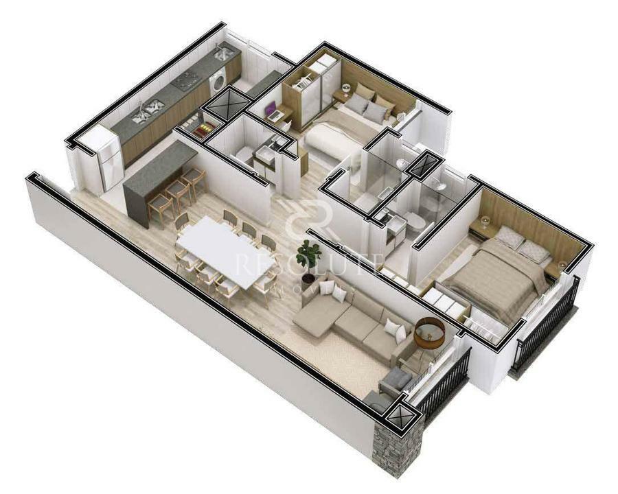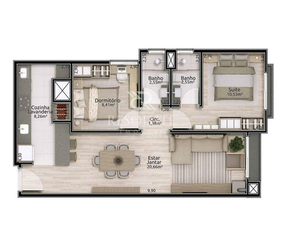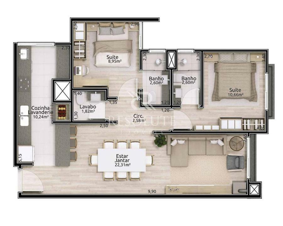 O empreendimento conta apartamentos com dois dormitórios e lavabo, com opção entre uma ou duas suítes, garantindo comodidade e praticidade aos moradores.
