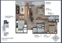 O apartamento tem 91.22m² possui duas suítes, lavabo, churrasqueira, espera para split e lareira, as esquadrias são em PVC com vidro duplo, e os pisos são de porcelanato e laminado, massa corrida nas paredes e forro em gesso.
