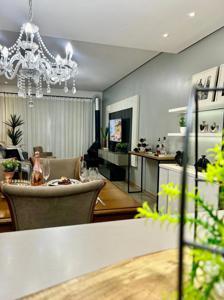Apartamento térreo, mobiliado e equipado, bem distribuído em 2 dormitórios, (sendo 1 suíte e 1 demi-suíte), amplo living sala de estar e jantar, cozinha, área de serviço separada e 1 vaga de garagem.