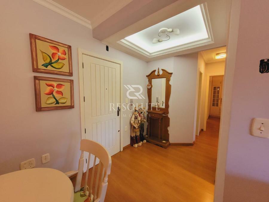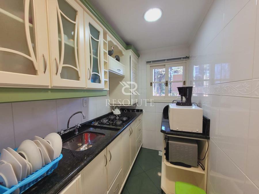 O apartamento possui 2 dormitórios sendo 1 suíte, banho social, sala de estar e jantar, cozinha fechada e área de serviço, sacada fechada, calefação e 1 vaga de garagem. Mobiliado e equipado, em bairro tranquilo e nobre de Gramado, próximo ao Lago Joaquina Rita Bier.