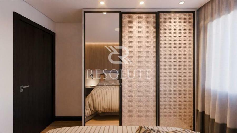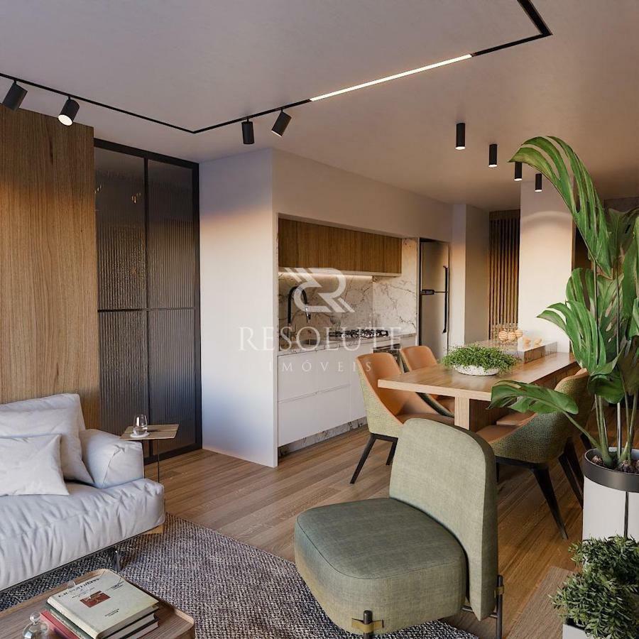 Apartamento composto por 02 dormitórios sendo 01 suíte, banho social, living em 2 ambientes (estar e jantar), sacada, cozinha americana com churrasqueira e área de serviço, esperas para lareira, calefação e split (ar condicionado) e box de garagem para 01 veículo.