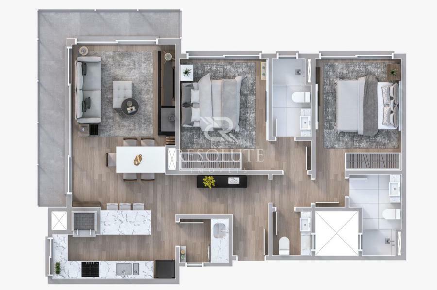 Apartamento composto por 02 suítes, lavabo, amplo living estar e jantar, sacada, cozinha americana com churrasqueira, área de serviço e 01 vaga de garagem.