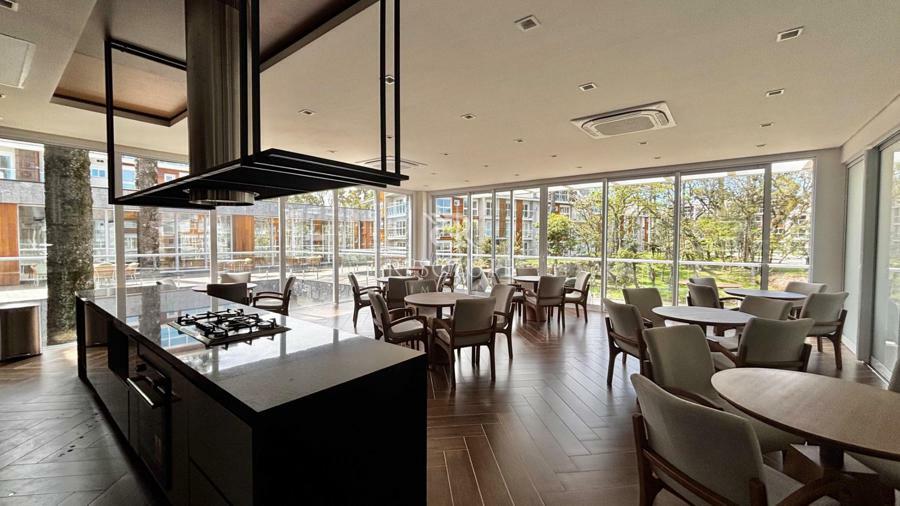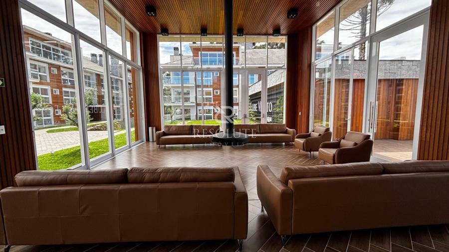 Conta com espera para calefação, água quente, lareira e ar condicionado (splits), as esquadrias são em PVC com vidro duplo, acabamentos serão em gesso e o acesso aos apartamentos será através de fechadura com senha.