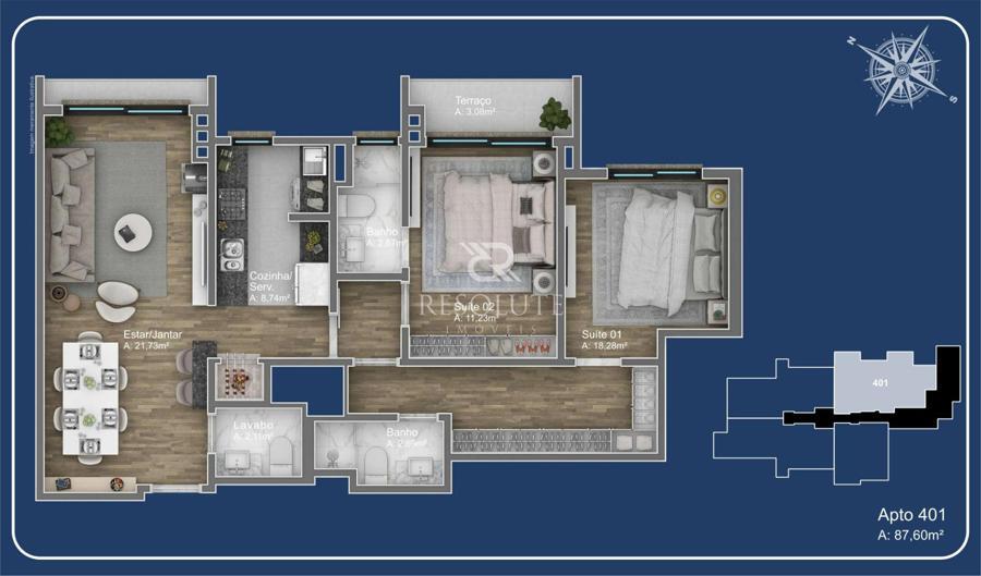 Os interiores foram projetados com requinte e bom gosto, combinando materiais de alta qualidade com um design moderno e funcional. Os espaços amplos e bem iluminados convidam à convivência, enquanto os acabamentos sofisticados elevam o seu estilo de vida.