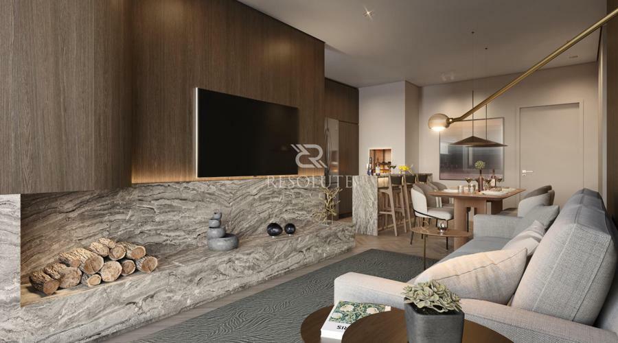 Empreendimento com salão de festas, espaço do fogo, com fogo de chão, espaços comuns decorados, à 5 minutos de carro da rua coberta.