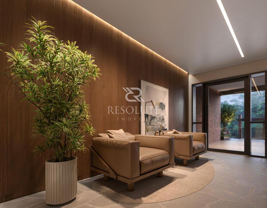 Apartamento de duas suítes, sala de estar e jantar integradas, cozinha, lavabo e área de serviço, uma vaga de garagem.