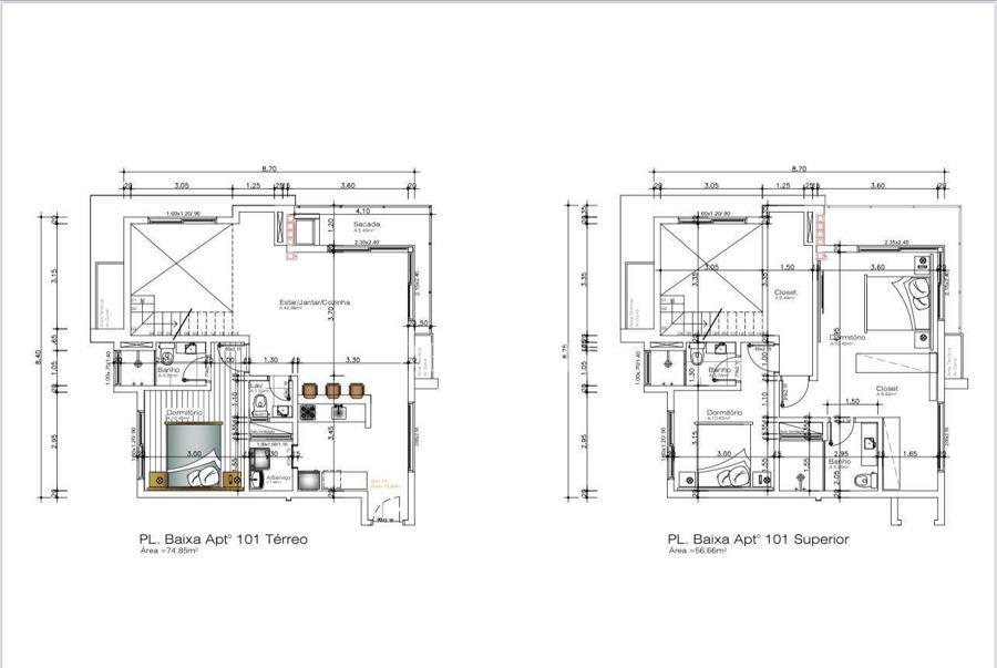 * Apartamentos de 1 e 2 dormitórios;