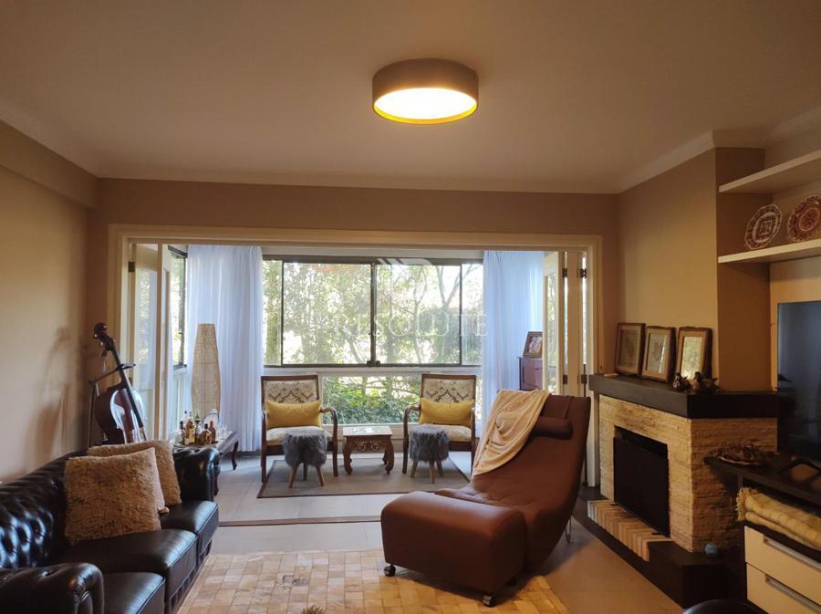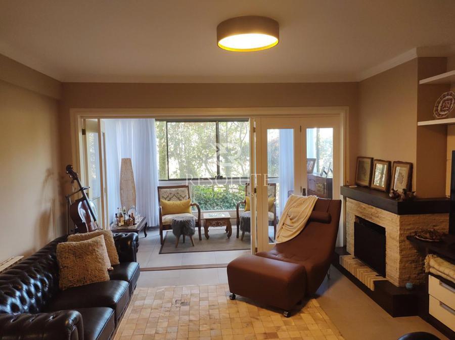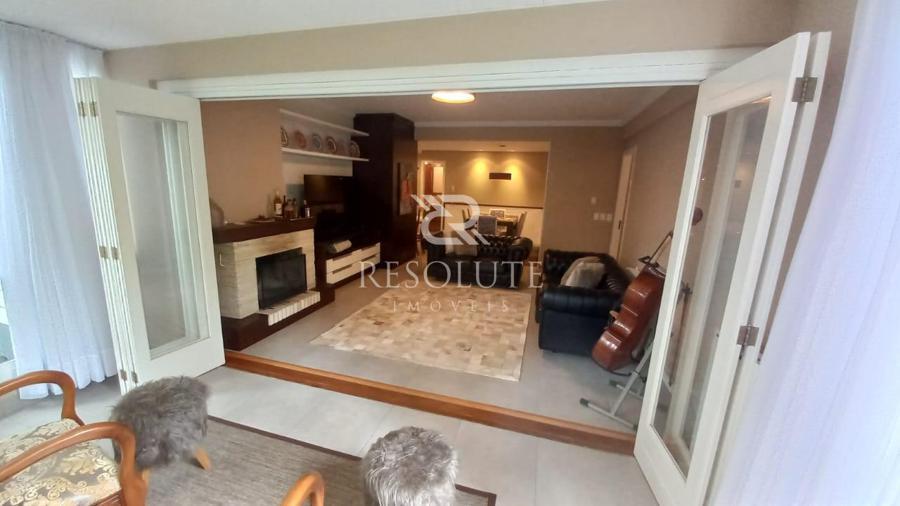 Ampla sala de jantar e estar com lareira integrada a sacada, espaço gourmet com churrasqueira, proporcionando um ambiente perfeito para momentos de lazer e confraternização.