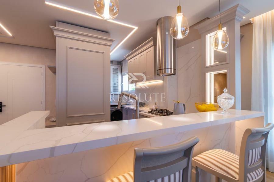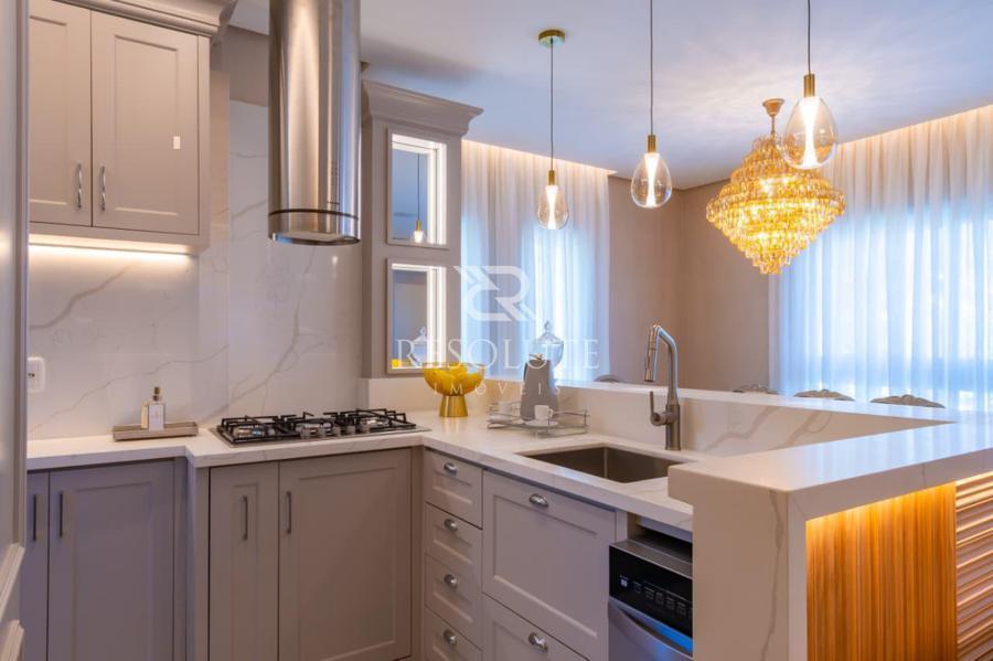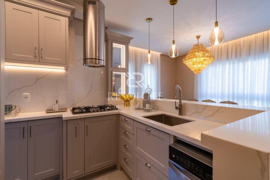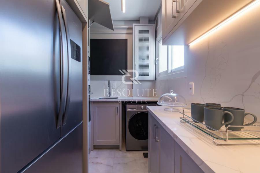 A cozinha equipada com eletrodomésticos de última geração e a decoração de altíssimo padrão tornam este apartamento um verdadeiro refúgio de elegância e conforto.