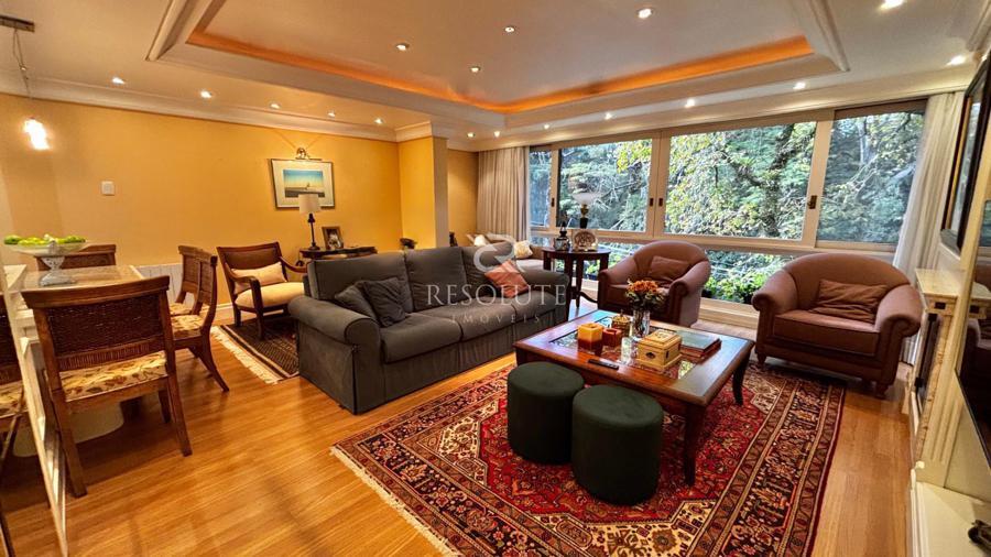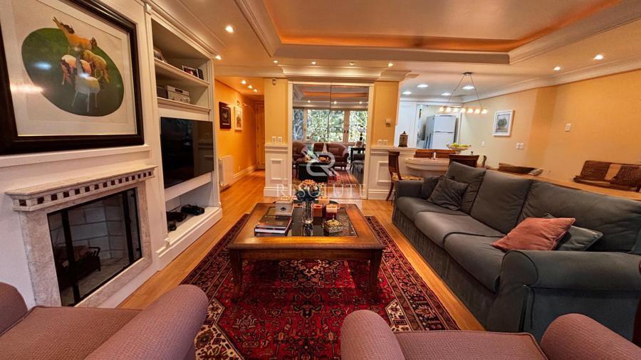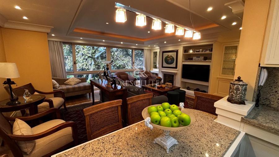 Apartamento mobiliado, decorado e equipado. Possui 3 dormitórios sendo 2 suítes, 1 lavabo, living sala de estar confortável com sala de jantar, ambiente intimo com lareira, cozinha, lavanderia, calefação instalada, box para 1 carro, orientação solar norte e leste, com belíssima vista para área verde, ficando a poucos metros do Centro de Gramado, lojas e restaurantes, localizado em local tranquilo e seguro totalmente residencial.