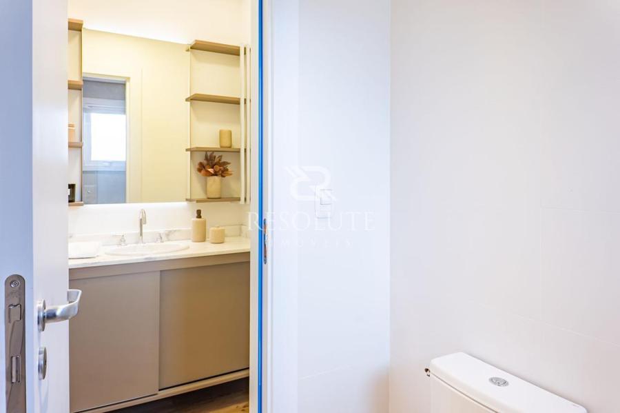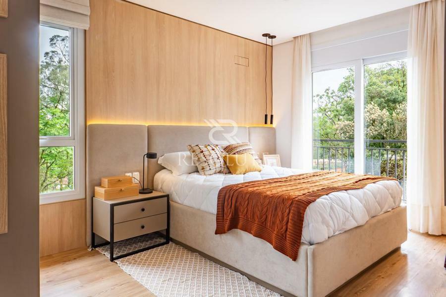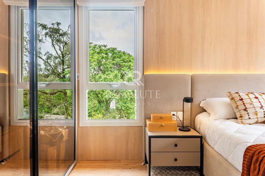 Lindo apartamento, ensolarado, mobilhado, decorado e equipado, com uma suíte e duas demi-suítes, sala de estar e jantar, em conceito aberto, lareira a lenha, churrasqueira a lenha, cozinha americana, lavabo e 1 vaga de garagem com box duplo.