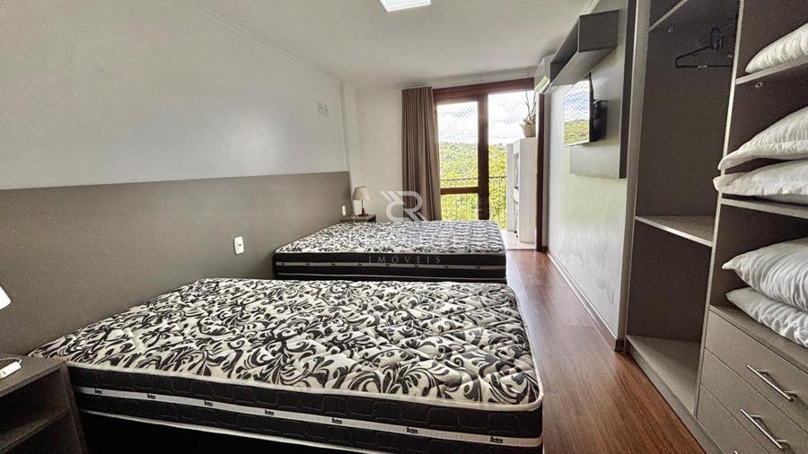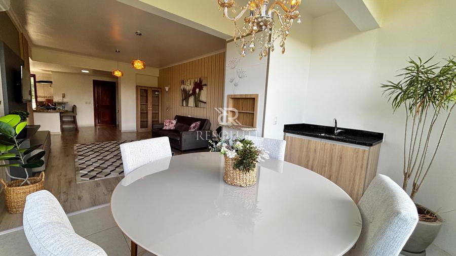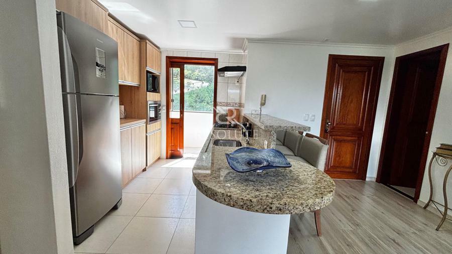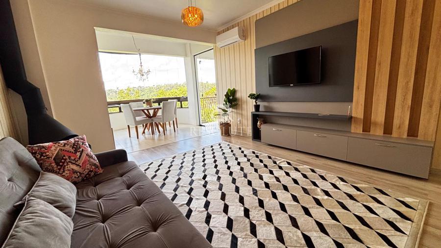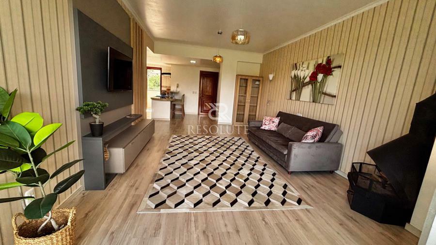 Apartamento composto por 03 dormitórios (sendo 01 suíte + 1 demi suíte), mobiliado e decorado pronto para moradia ou rentabilizar por aluguel de temporada, amplo living estar e jantar, cozinha americana, área de serviço separada, lareira ecológica, churrasqueira, piso em porcelanato, acabamentos em gesso, ar condicionado(split) e água quente instalados, sacada fechada com vista panorâmica para o vale, localizado a menos de 5 minutos do centro da cidade de Gramado, em local tranquilo com infraestrutura de mercados, farmácias, lojas e cafés.