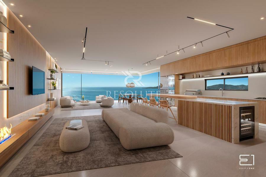 Cada unidade possui esquadrias de alto desempenho, que garante isolamento térmico e acústico, além de permitir a abertura total das janelas de vidro que proporcionam uma sensação de continuidade entre o interior e o exterior, trazendo muita luz natural e a deslumbrante vista para o oceano.