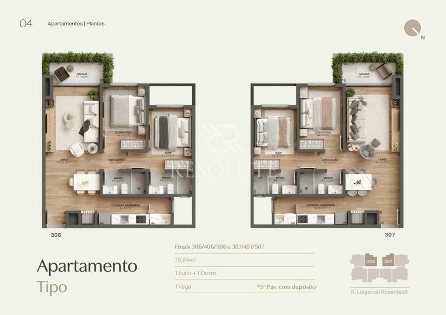 São 36 unidades exclusivas, oferecendo um ambiente espaçoso e contemporâneo para atender as mais exigentes expectativas, são apartamentos com 2 e 3 dormitórios, ou com 1,2 ou 3 suítes, com metragens de 72m², chegando a 180m² + espaço Garden.