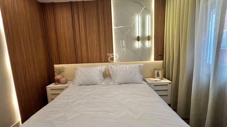 Com 79,30 m² de área privativa, o apartamento foi planejado para oferecer máximo conforto e funcionalidade. Sua distribuição inteligente conta com duas suítes completas, que asseguram privacidade e bem-estar, além de um lavabo social para maior praticidade. Os ambientes são elegantemente decorados e equipados com acabamentos de alto padrão, criando um espaço sofisticado e acolhedor, pronto para morar imediatamente.