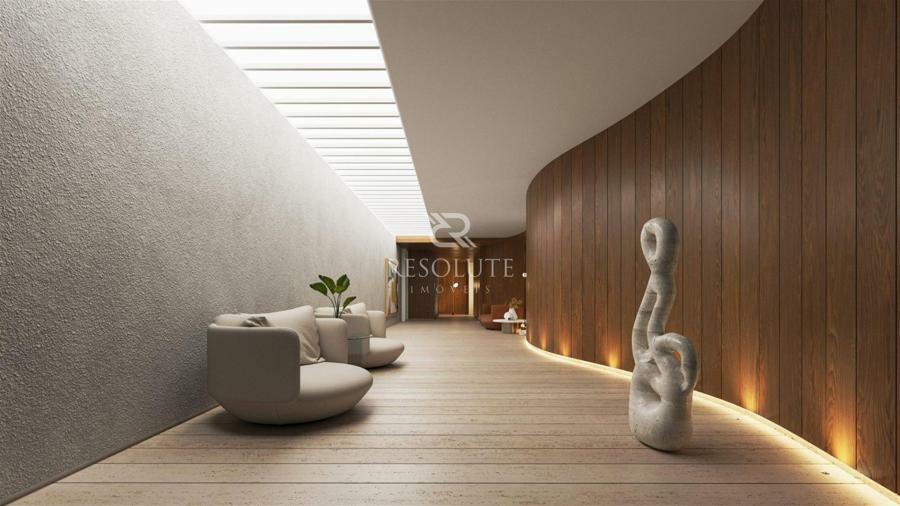 As áreas comuns do empreendimento, incluindo corredores, possuem mobiliário e obras de arte selecionadas por uma curadoria minuciosa. São peças de grandes nomes, como Estúdio Bola e Guilherme Wentz.