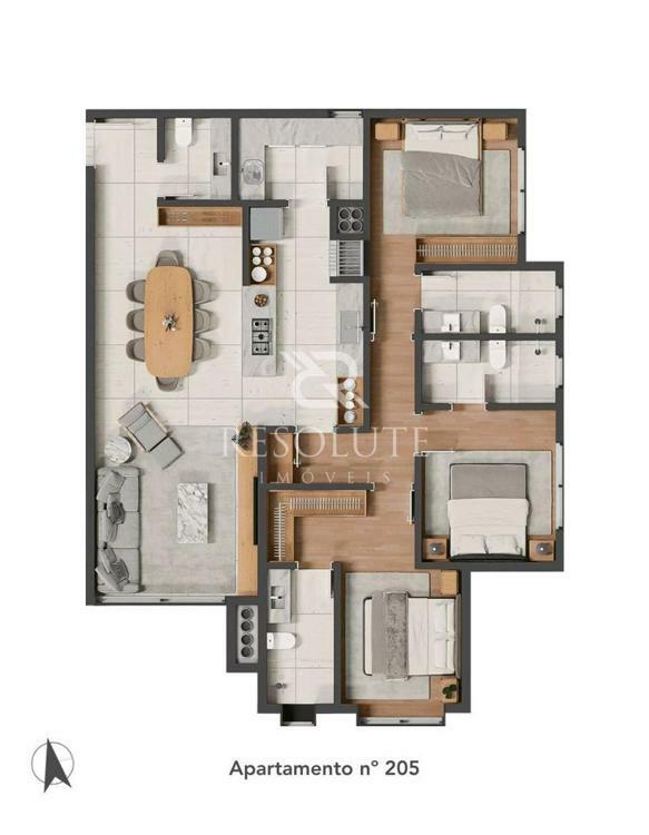 Amplos apartamentos de três suítes chegando a 141,39 m² com duas vagas de garagem.