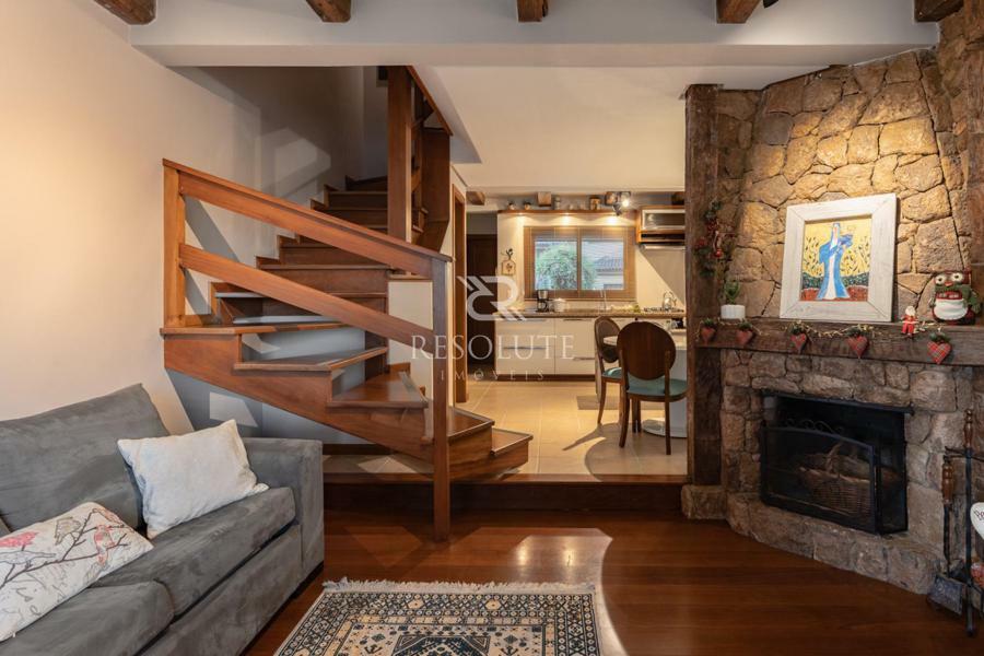 A casa esta semi-mobiliada, distribuída em 02 suítes, lavabo, living em 02 ambientes sendo estar com lareira e jantar, cozinha em conceito aberto, churrasqueira e 01 box de garagem, tudo isso a cerca de 5 minutos do centro da cidade de gramado, próxima a toda a infraestrutura da cidade.