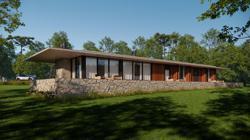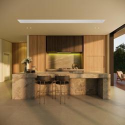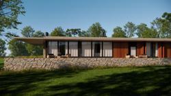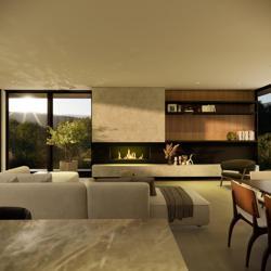 Projetada em um amplo terreno com leve declive e vista para a cidade, a Casa Panorama insculpe a topografia e passa a fazer parte da paisagem. Com um design totalmente térreo e uma cuidadosa seleção de materiais, incluindo concreto aparente, pedras naturais, madeira e vidro, a residência incorpora elementos característicos da região que trazem uma atmosfera contemporânea e acolhedora.