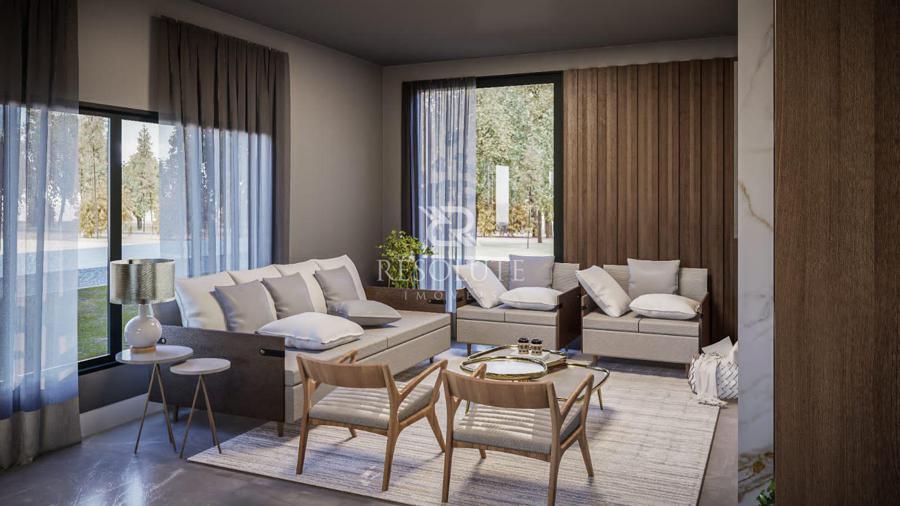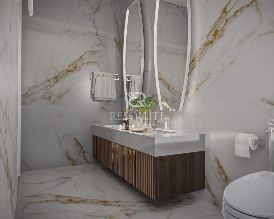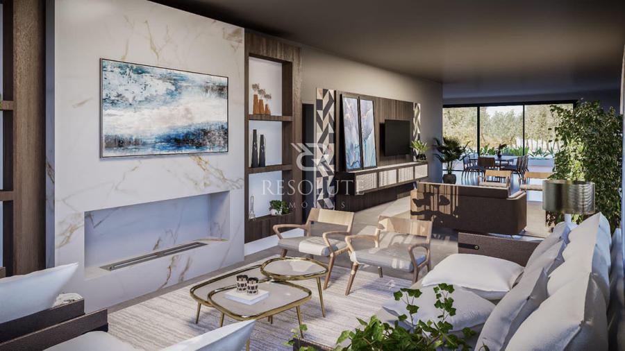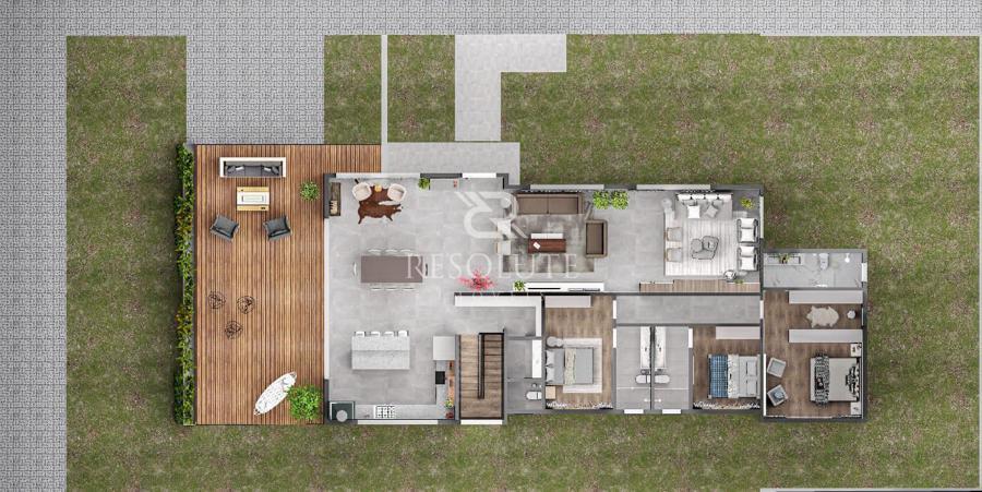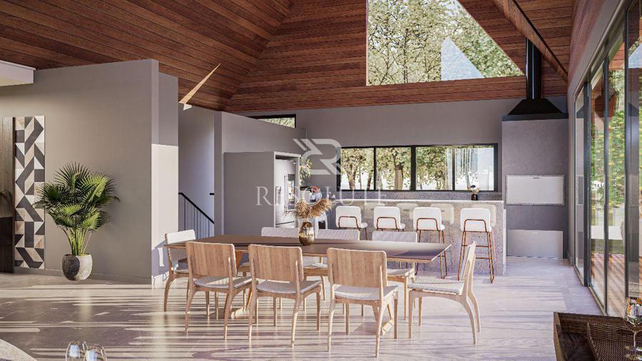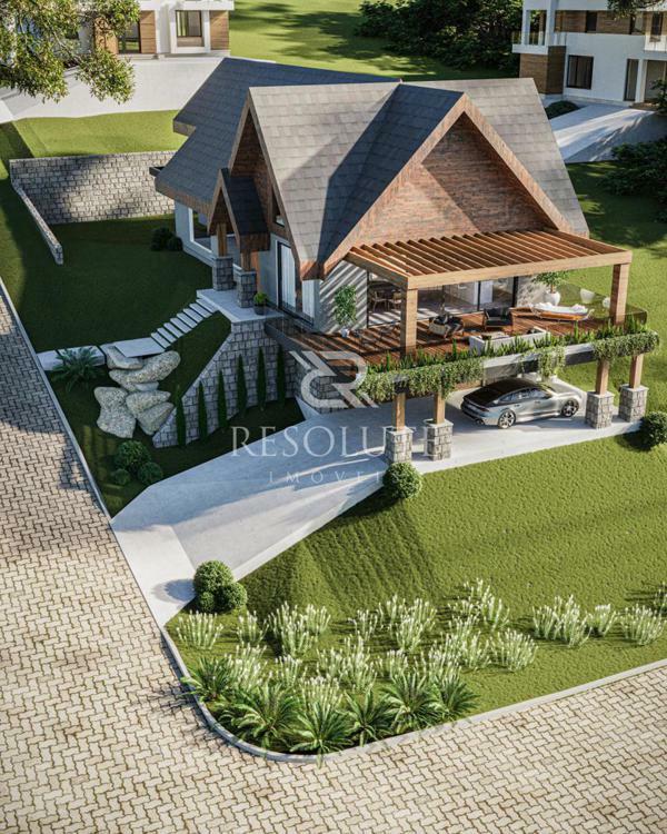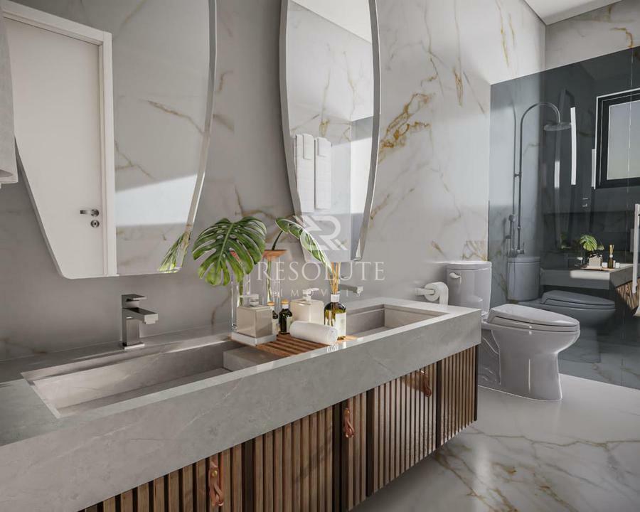 Em um terreno de 800m², ela se destaca por conter 440m² distribuídos em espaço intimo térreo com 3 suítes, sendo uma suíte máster, cozinha e jantar integrados, lavabo, sala de estar e sala de tv, sem fala na garagem para 4 veículos e lavanderia separada.