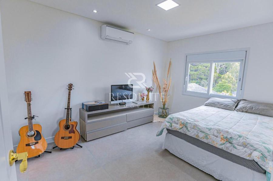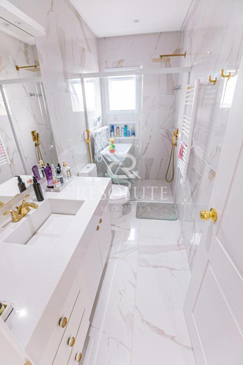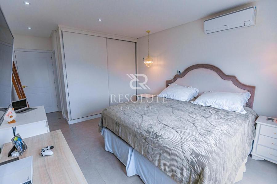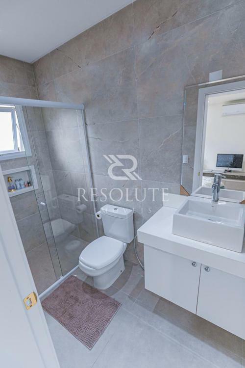 A casa conta com 3 suítes espaçosas todas equipadas com split (quente e frio), todos os banheiros revestido com porcelanatos de primeira. As portas contam com fechaduras douradas importada dos Estados Unidos. No banheiro da suíte principal possui também torneira dourada importada.