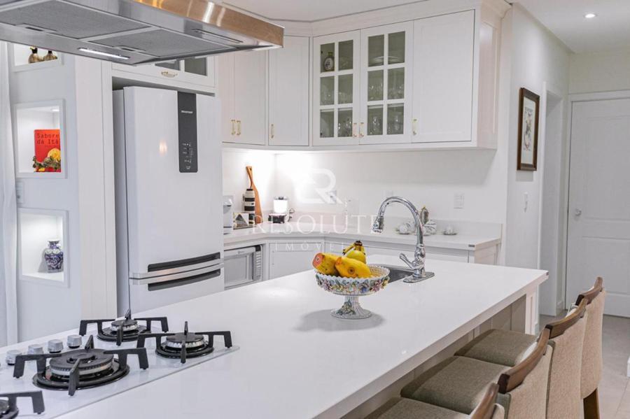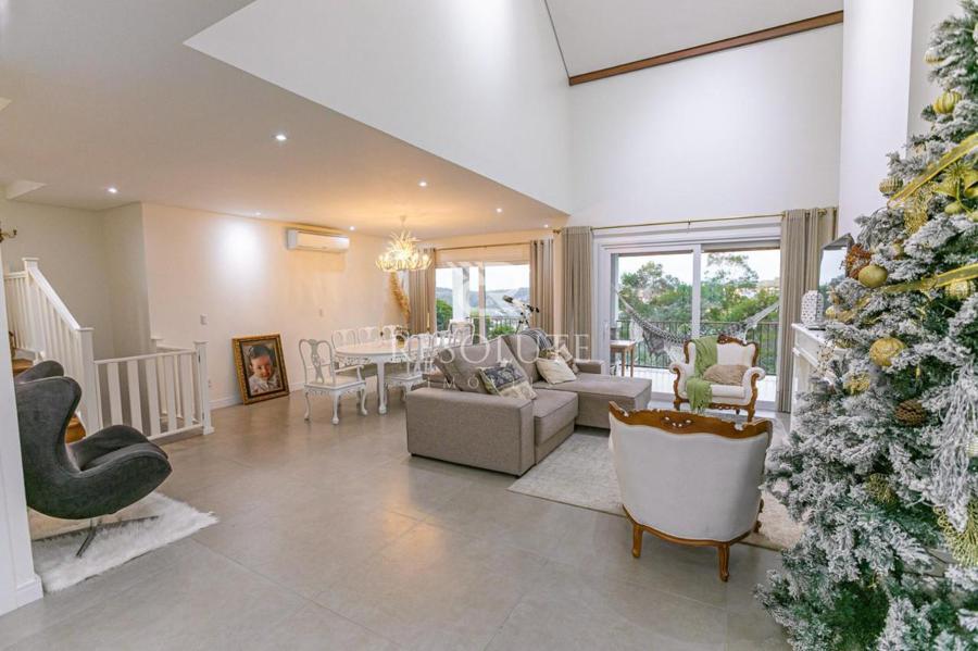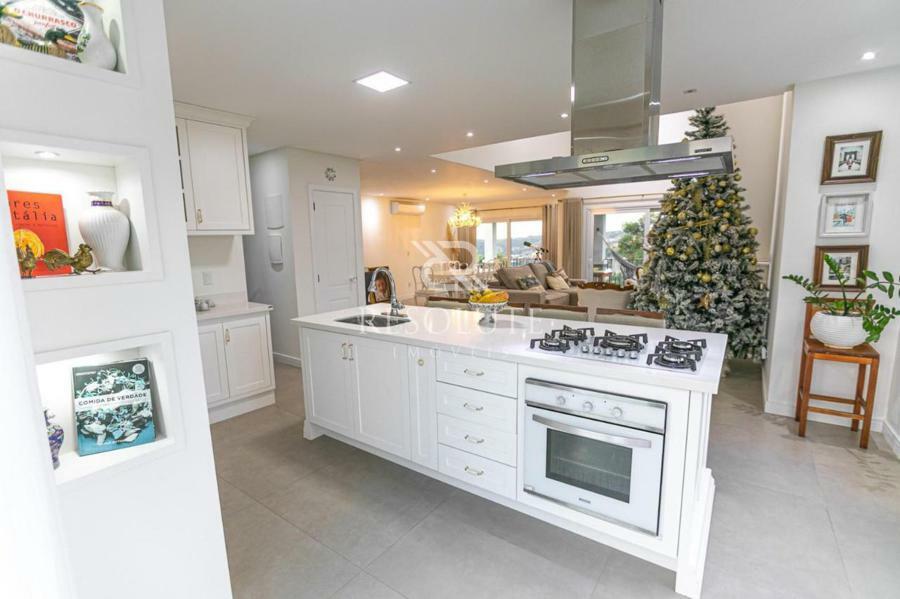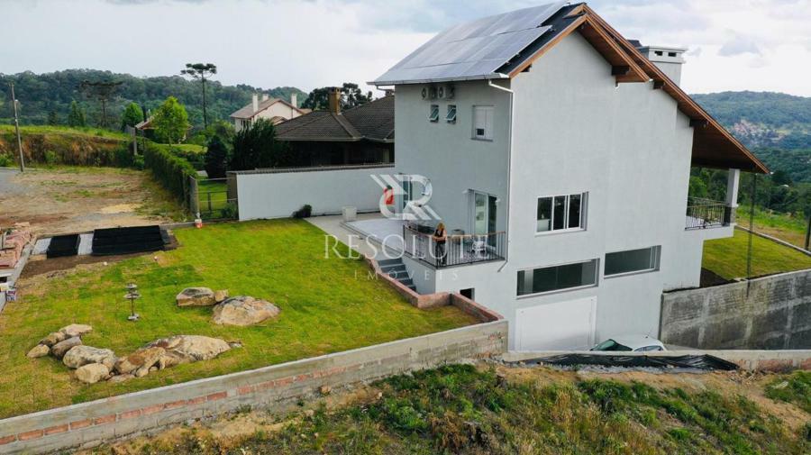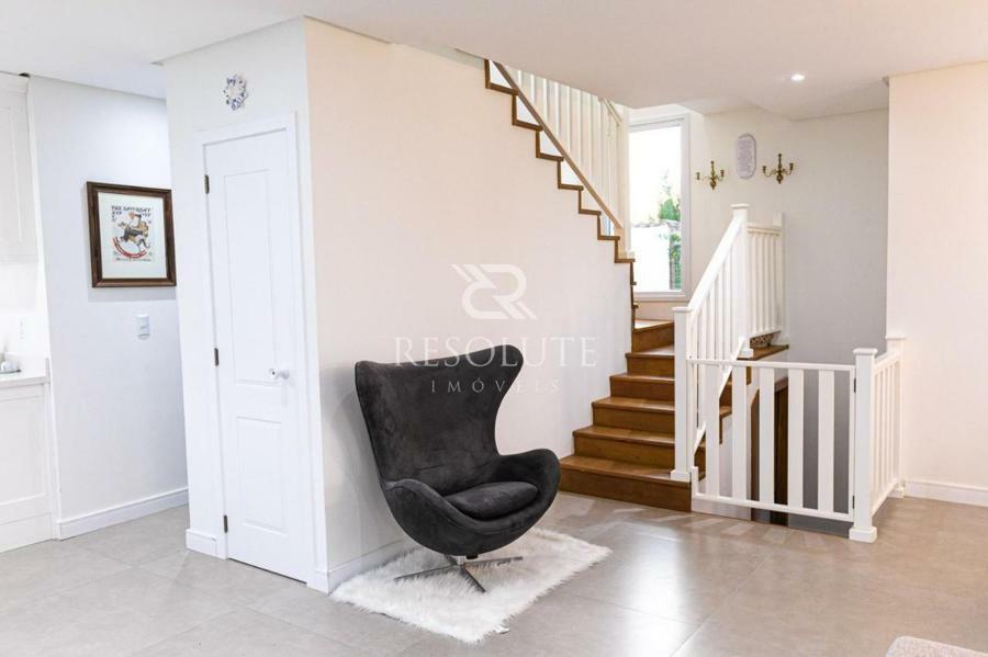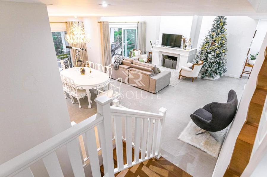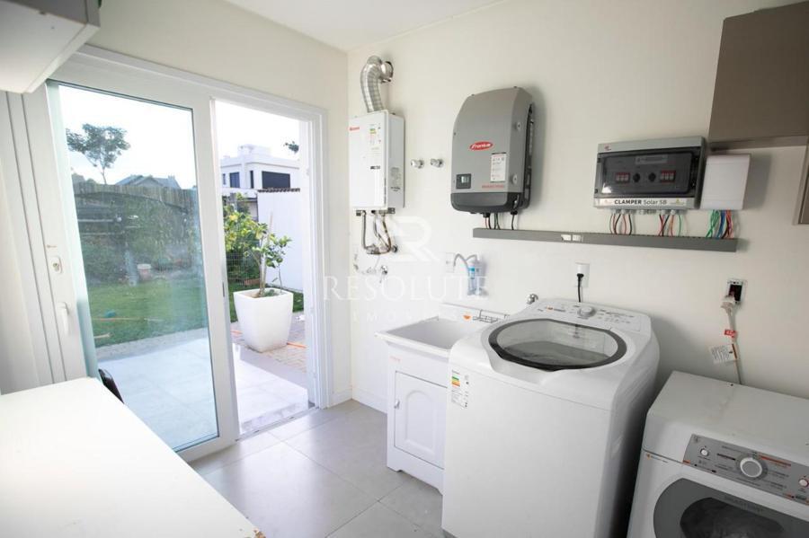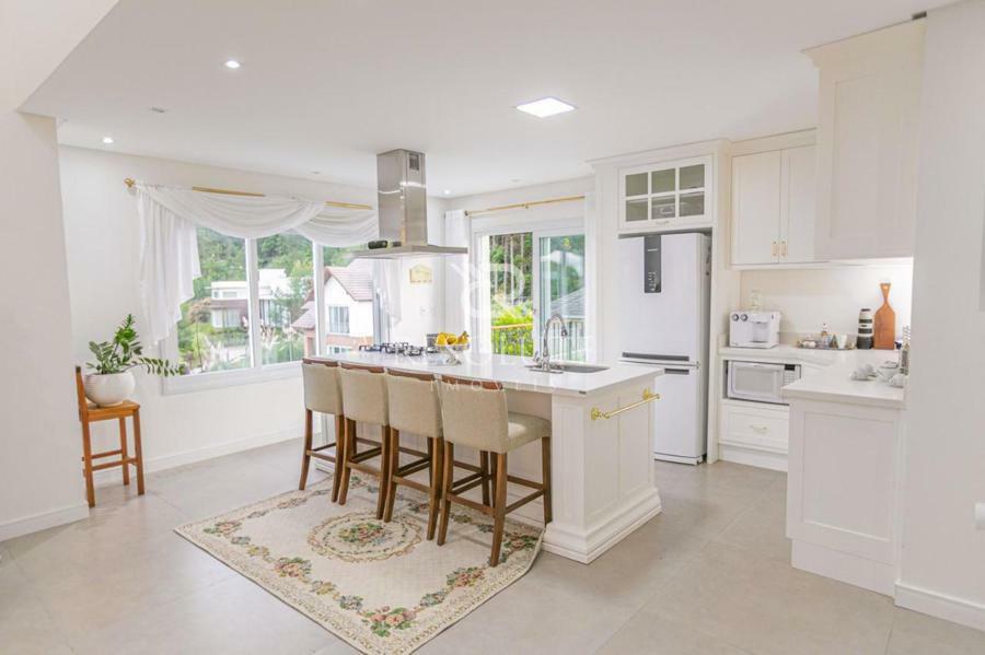 Possui um amplo salão com pé direito duplo com split (quente e frio) que integra a sala de estar (com uma linda lareira com um pé direito duplo e meio), sala de jantar e Cozinha. Tudo em um mesmo ambiente pensado para que as pessoas possam interagir em todo ambiente. A cozinha conta com armários projetados e uma linda e grande ilha central com pia , fogão e forno elétrico. Ainda na parte da sala, próxima a cozinha possui mais um banheiro e uma lavanderia, com maquina de lavar, maquina de secar, aquecedor da água, e o parelho do painel solar.