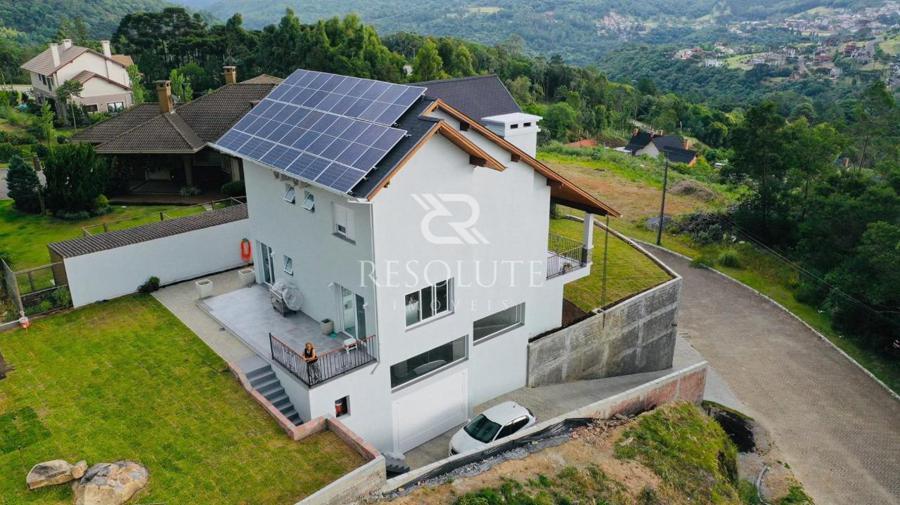 A casa por estar em uma posição solar privilegiada, com vista permanente para o vale, onde recebe luz solar durante todo o dia, possui 29 painéis solares que geram uma ótima quantidade de energia para todo o mês.