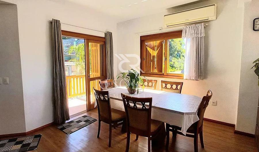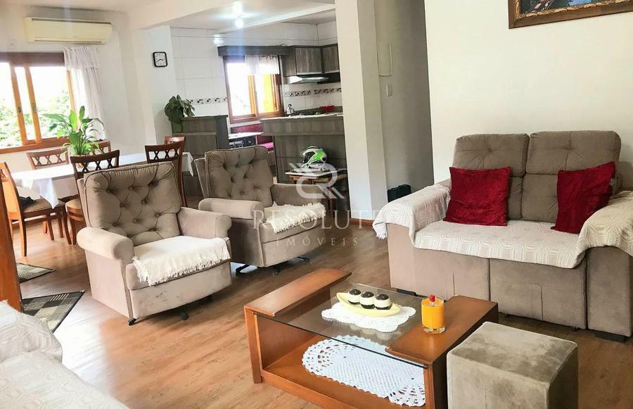 Casa com jardim, mobiliada, decorada e equipada. 5 minutos da Rua Coberta, dividida em 3 pavimentos, 4 quartos, 3 deles com sacada, sendo uma suíte, sala de jantar, estar e cozinha integrados. Sala de estar com lareira à lenha, sala de jantar com ar condicionado, cozinha completa com fogão à lenha, espaço gourmet com churrasqueira e vista para a cidade, terraço com vista panorâmica do centro de Gramado. Área de serviço e lavanderia, 3 banheiros completos, garagem para quarto carros. Aquecimento de água à gás.
