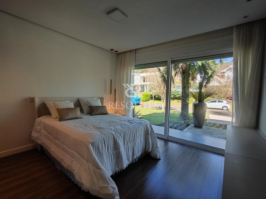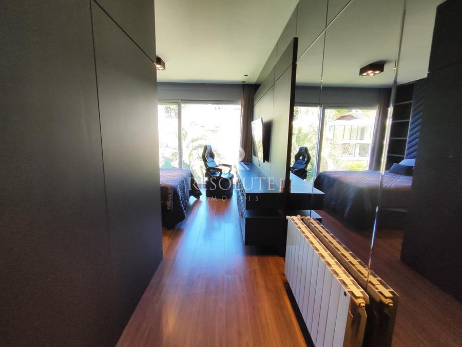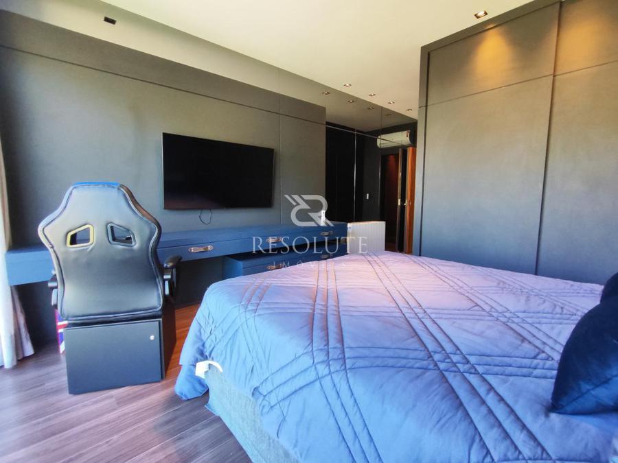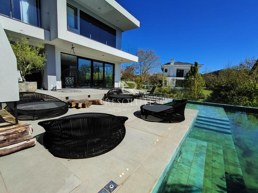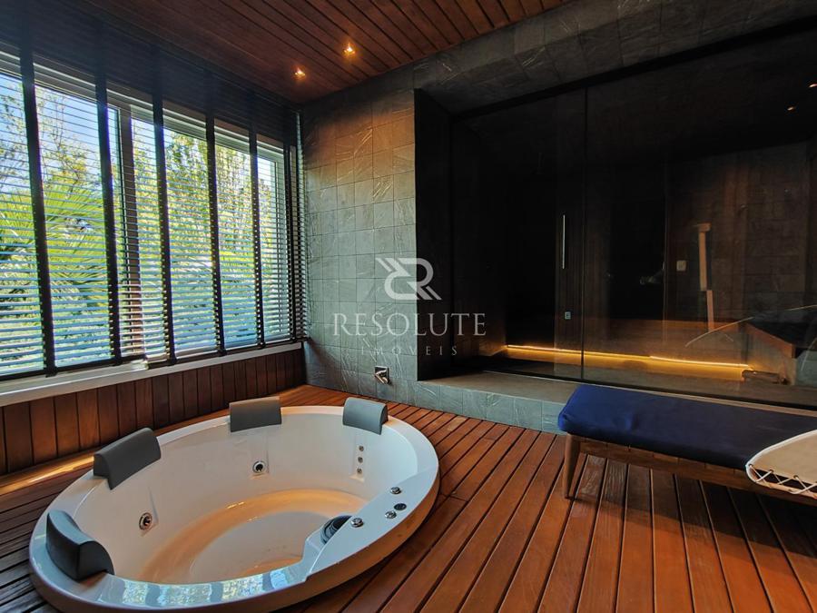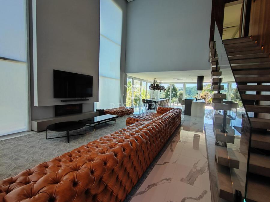 A área social é ampla e integrada, com sala de estar de pé-direito duplo (7,5 m), TV de 85 polegadas, cozinha americana e espaço gourmet perfeito para receber. Para momentos de lazer e relaxamento, a casa conta com sala de jogos e carteado, adega climatizada, sala de cinema, sauna úmida, ofurô e uma piscina com borda infinita equipada com aquecimento solar.